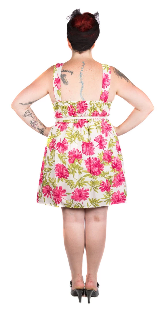 This gorgeous summery floral dress best fits a 2 Extra Large – 3 Extra Large, as the stretchy back makes it comfortable and easy to wear! Very cute with a white print cardigan and some heels!