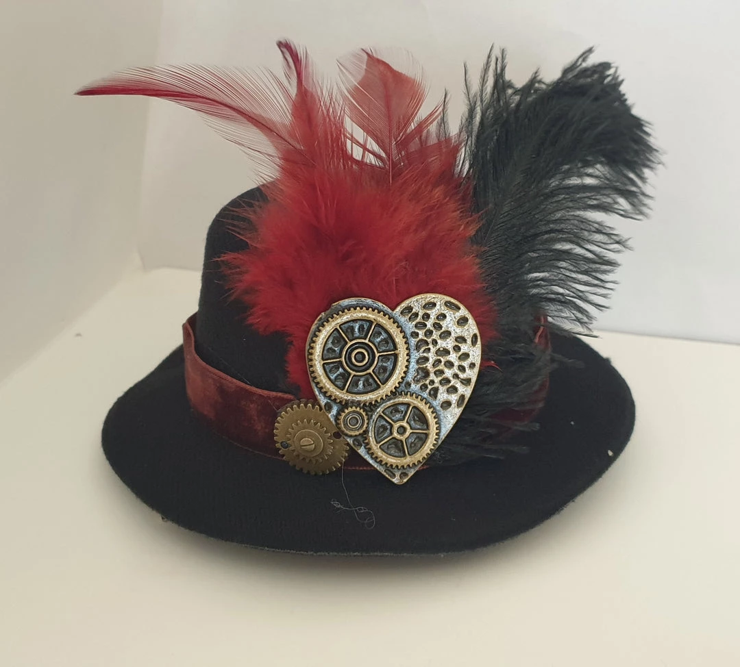 A beautiful mini top hat with Steampunk embellishments! Available in three different styles: square clock, heart clock and round clock.