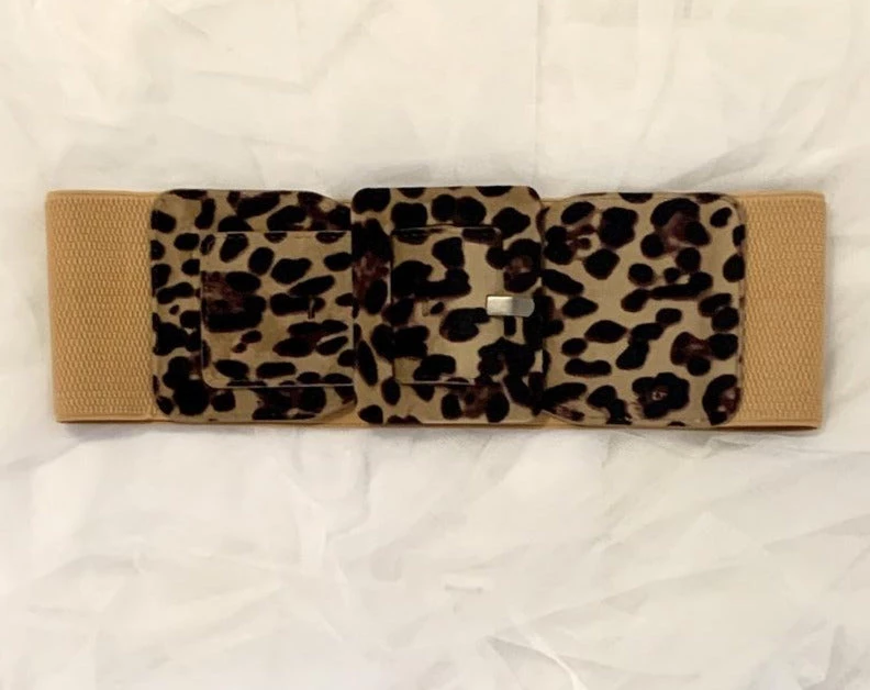 Finish off any outfit with this glam cincher belt to give you that perfect hourglass figure. Features an adjustable buckle, animal print detail at the front and tan elastic at the back.