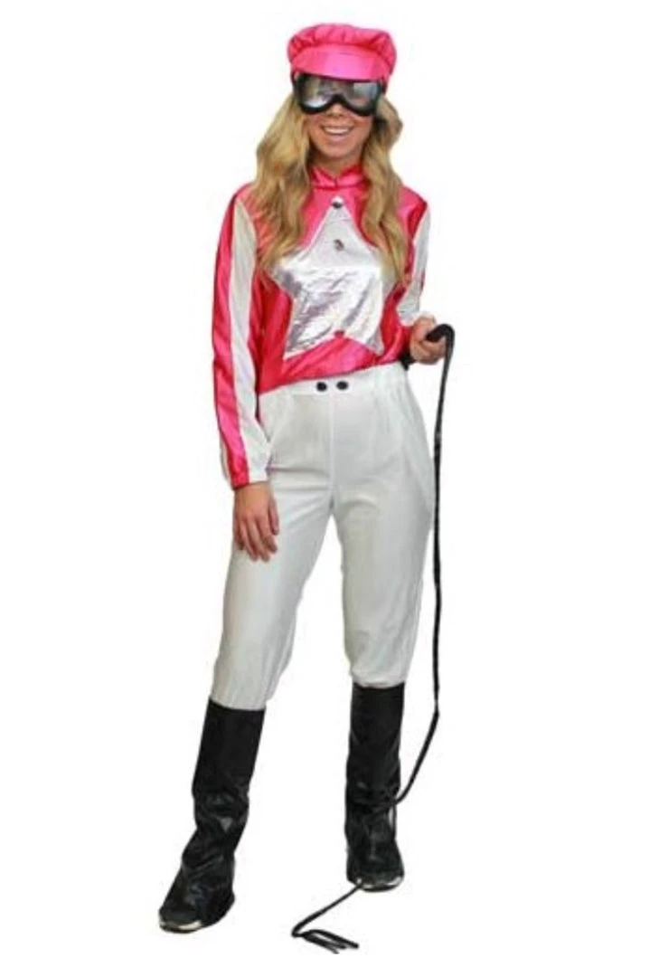 Celebrate Melbourne Cup in style in this Pink Ladies Jockey Uniform. The costume includes shirt, trousers, cap, goggles and bootcovers.