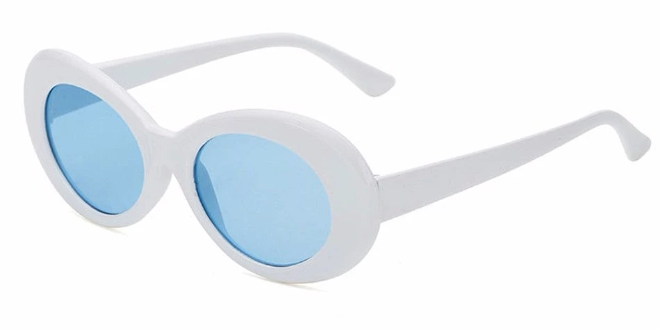 Hurly-Burly White Round Glasses Blue Lens