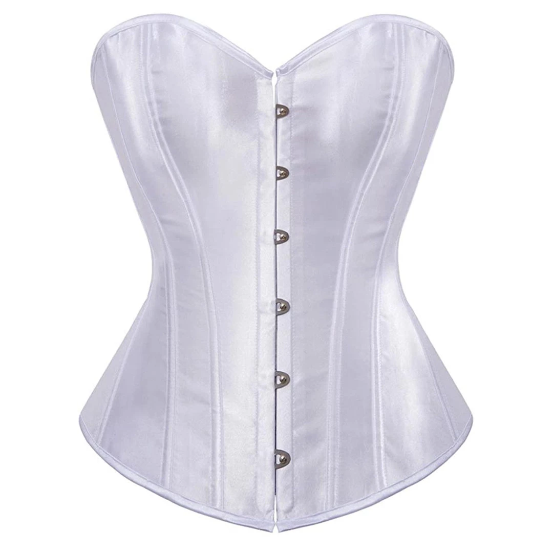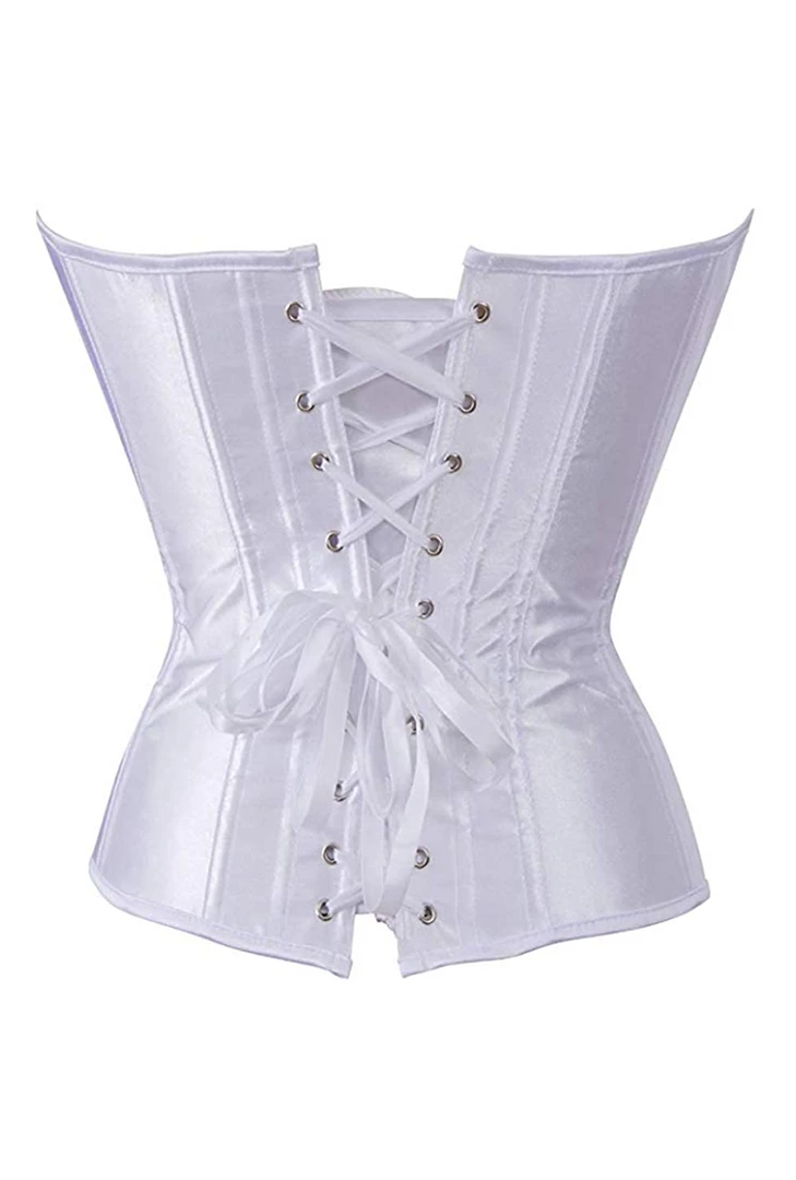 The Super sexy White Satin Corset is a perfect corset to wear for a fun night out! Corset has a 6 Busk Front Closure, a Lace-Up Back Closure and has Plastic Boning.