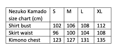 You’ll be all set for your next cosplay or convention in this Nezuko Kamado black kimono-style robe with pink shirt and skirt.