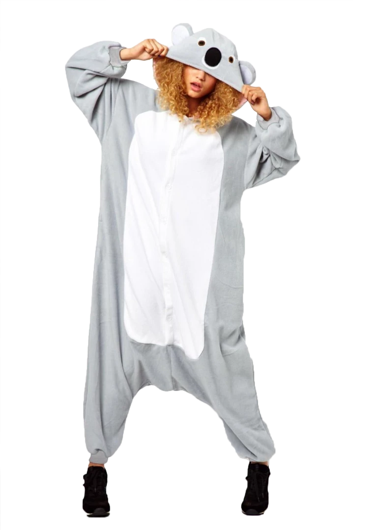 Stay warm this winter with this adorable Koala onesie made with a super soft coral fleece. This onesie comes complete with a face detail on the hood and tail to complete the look.
