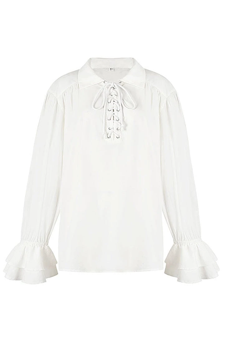 This versatile shirt is made from super soft spandex blend and features flared ruffle sleeves and a lace-up front. Perfect for a range of costumes including steampunk, victorian, pirate, and royal. Available in sizes S-2XL.