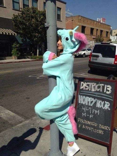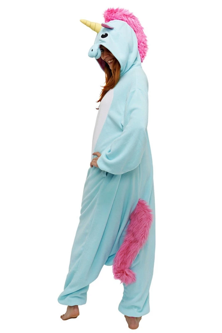 Be super comfy lounging around your house or at your next costume party in this awesome unicorn onesie! Made of a very solf coral fleece.