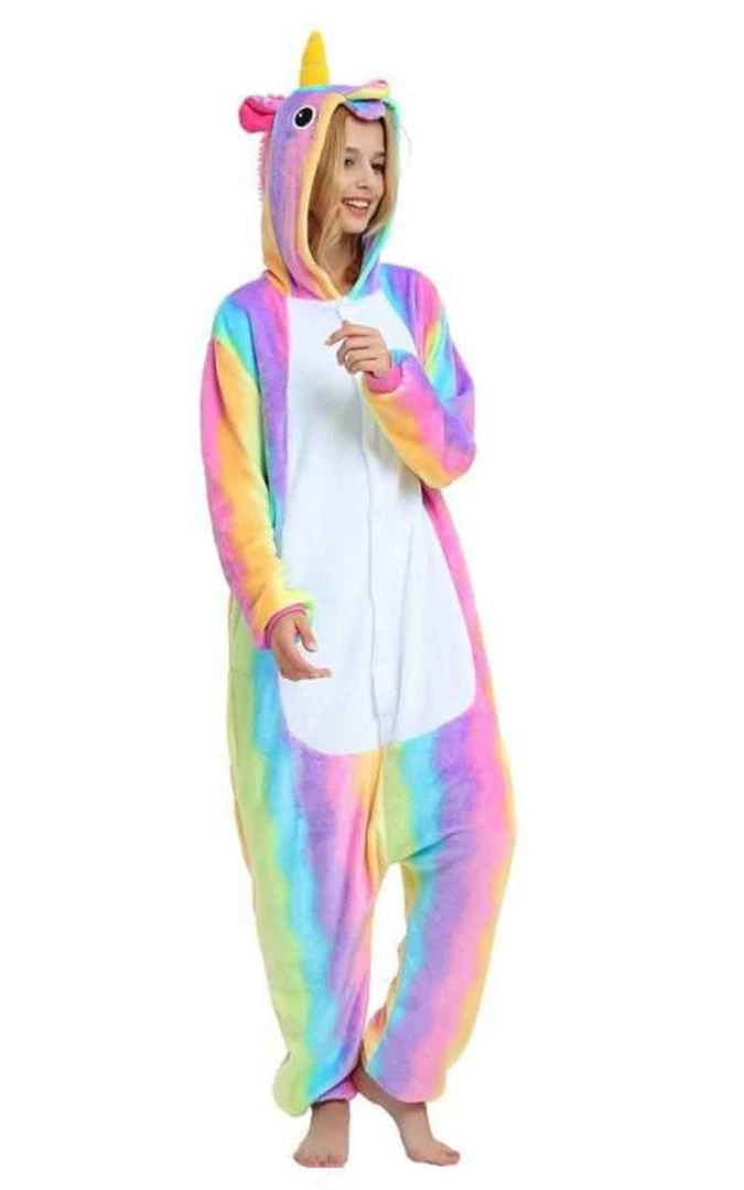 Be super comfy lounging around your house or at your next costume party in this awesome unicorn onesie! Made of a very soft coral fleece.