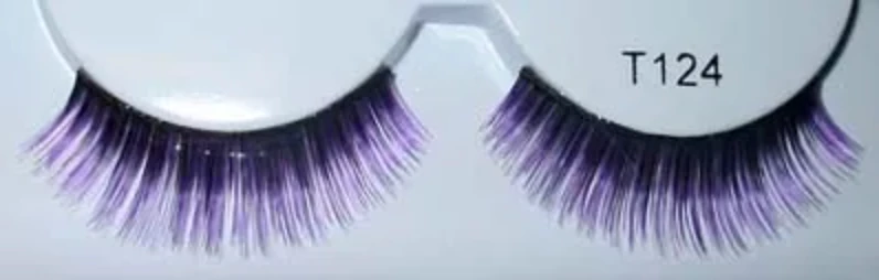 Super fun Purple metallic tinsel eyelashes. Great for your next costume party or finishing off a unique makeup look.