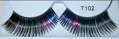 Super fun black and rainbow tinsel eyelashes. Great for your next costume party or finishing off a unique makeup look.