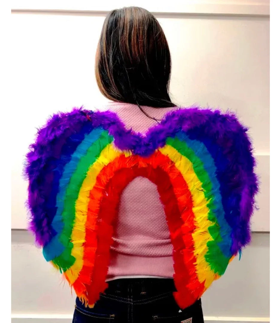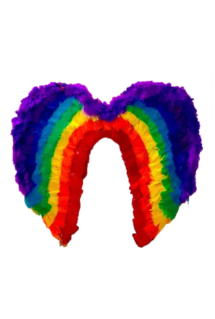 Show your true colours with these beautiful rainbow feathered wings. Perfect for Pride or Mardi Gras.