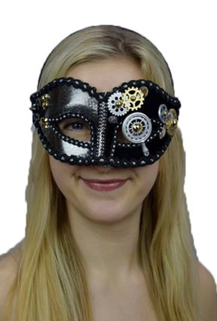 Interalia Silver Black Steampunk Cogs Mask