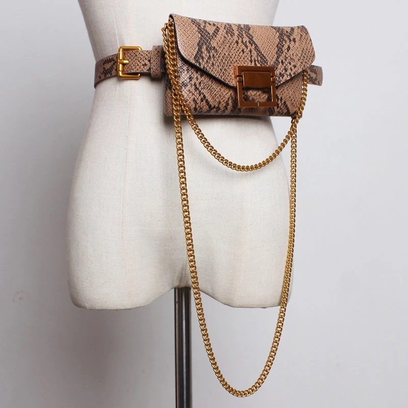 SKU: jacky-wang-6692078682163 Categories: Accessories, Bags & Wallets, Belts & Harnesses Tags: Chain, Fanny pack, Handbag, Leather, PU leather, Snake skin, Snakeskin, Steampunk