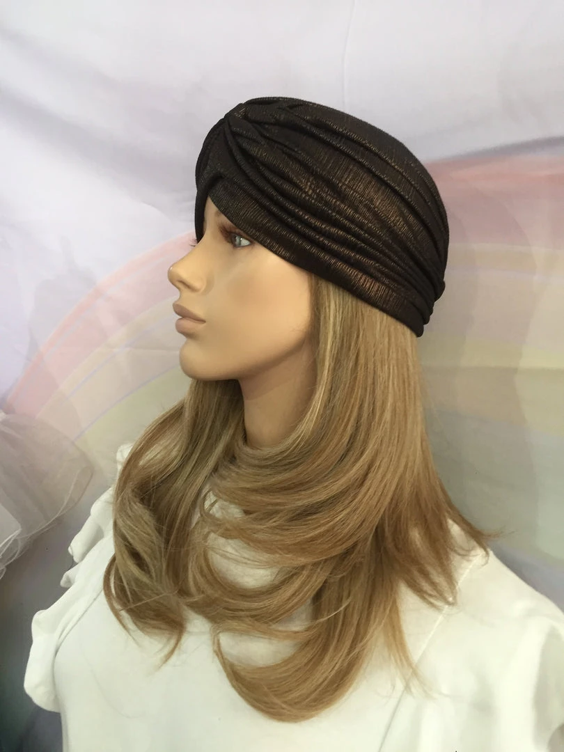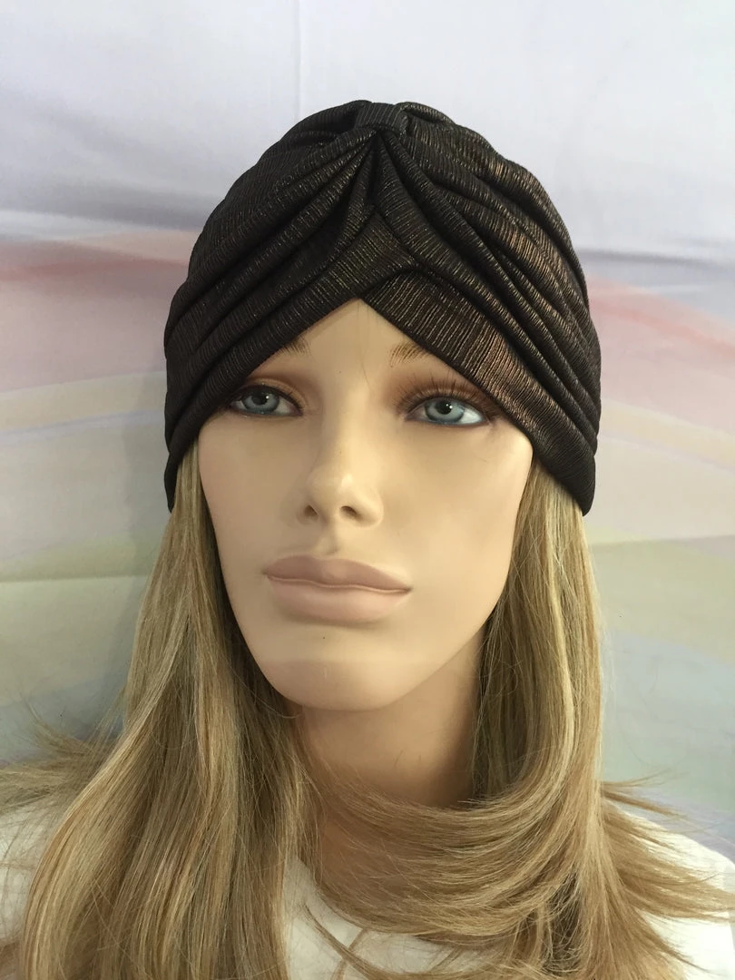 Beautiful shimmery slip-on pleated Fashion turban.