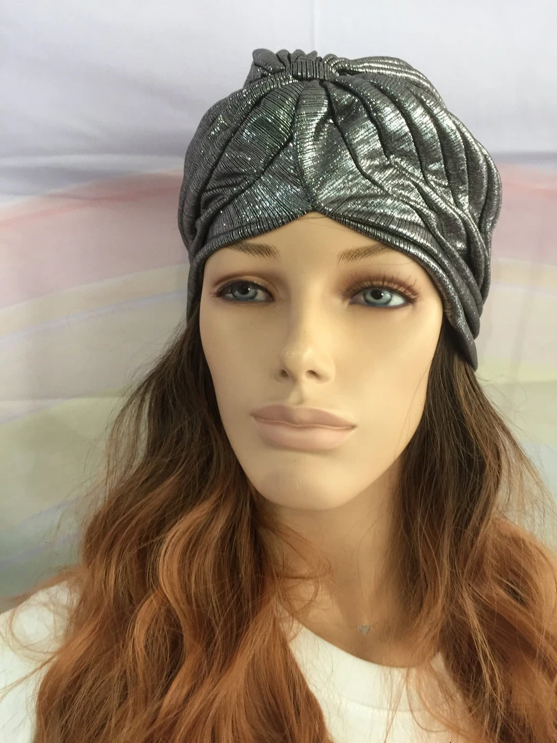 Beautiful shimmery slip-on pleated Fashion turban.