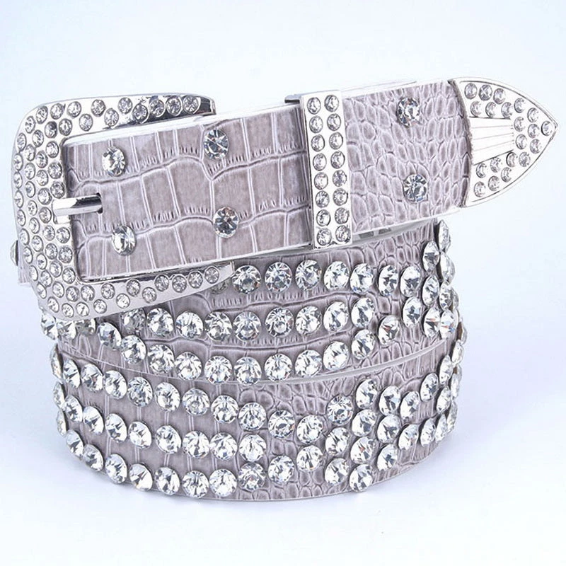 Jacky Wang Grey Rhinestone Studded Belt Belts & Harnesses