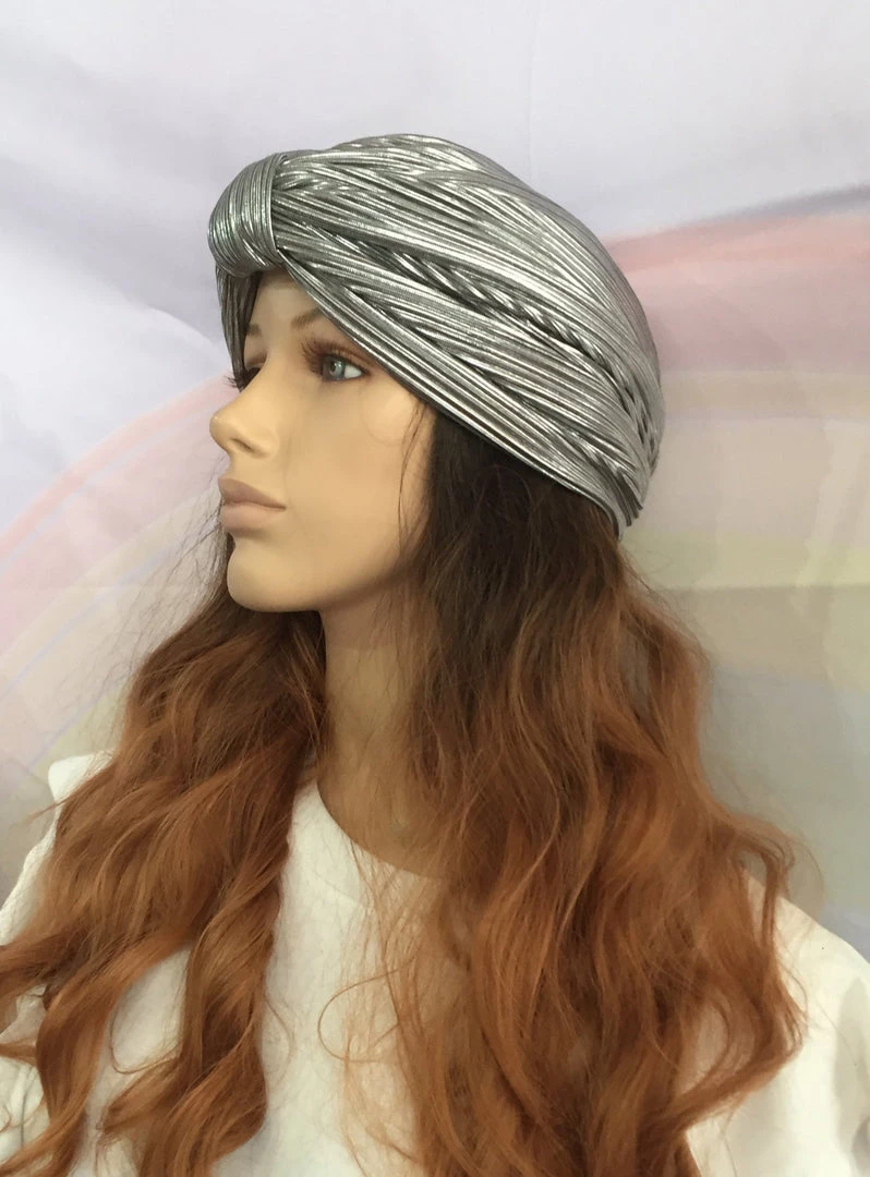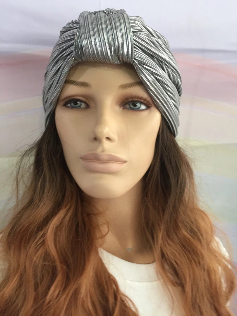 Beautiful shimmery slip-on pleated Fashion turban.