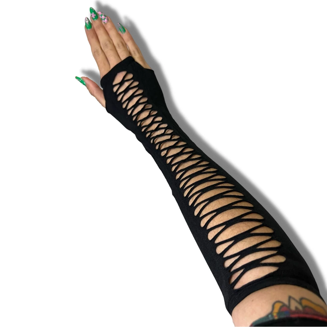 Jacky Wang Holey Black Arm Warmer Gloves