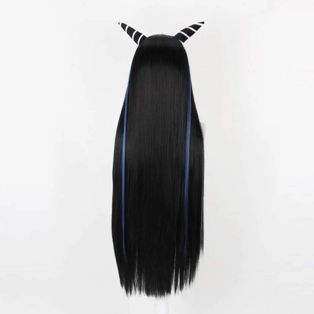 This edgy Ibuki Mioda wig would be perfect for your next cosplay, convention, photoshoot and more! This wig has a nice Long Black Colour with White Streaks and Pink and Blue streaks in the bangs and Black and White Stripe Plush Horns!