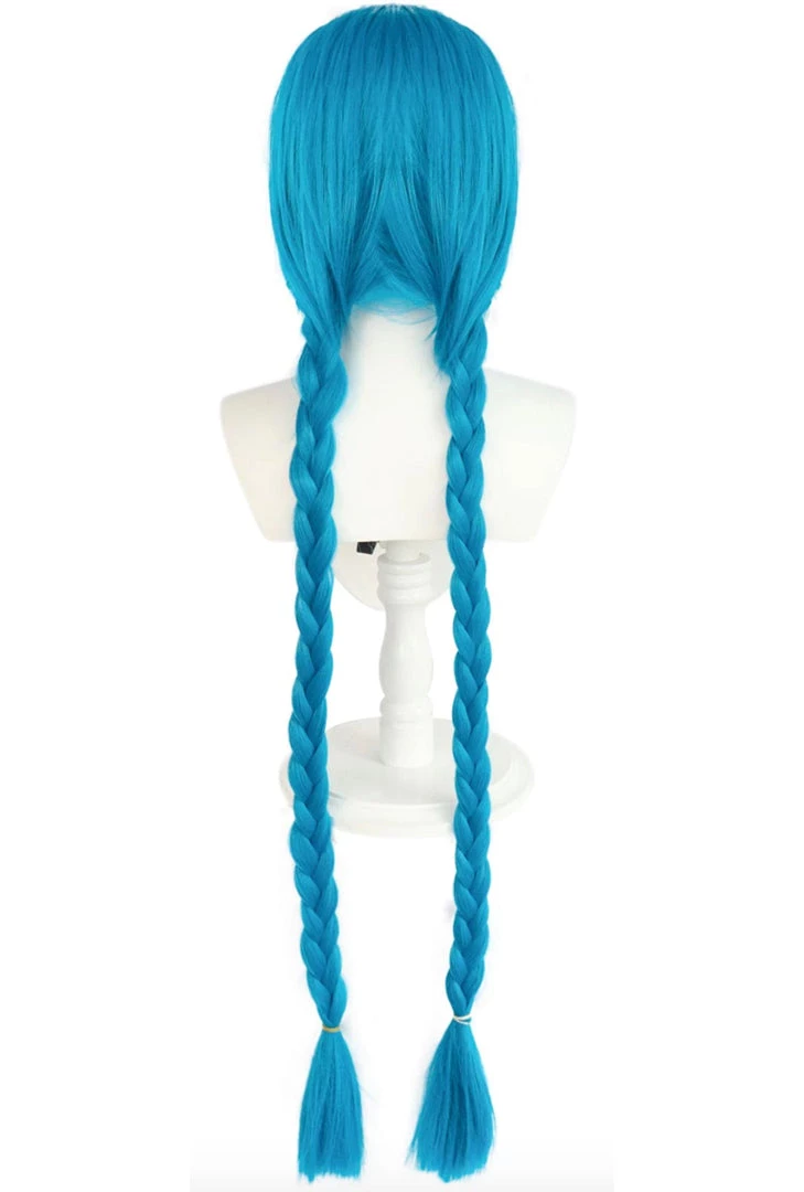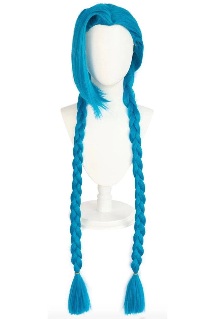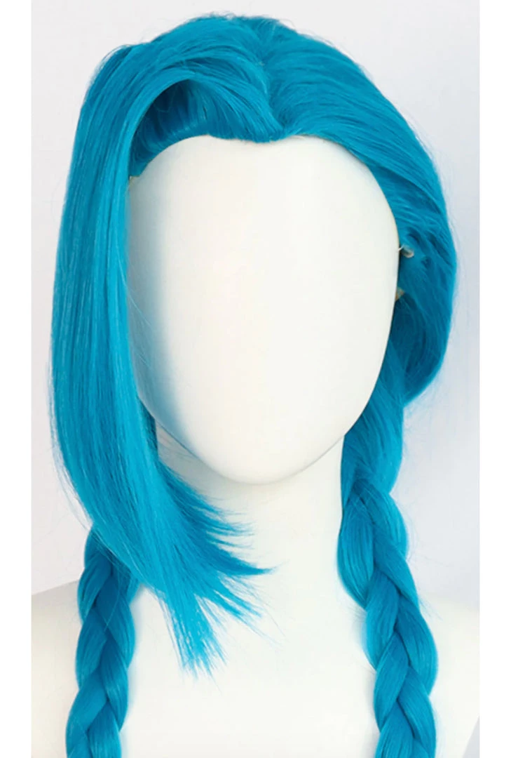 Cosplay & wreak havoc as Jinx from the video game League of Legends and the Netflix series Arcane! Our blue Jinx cosplay wig features a long side fringe with two extra-long 120cm low braids. This wig is heat-resistant up to 150° and can be styled using a hair straightener, curling iron, blow dryer and hairspray. Perfect for cosplay, fashion and for everyday wear!