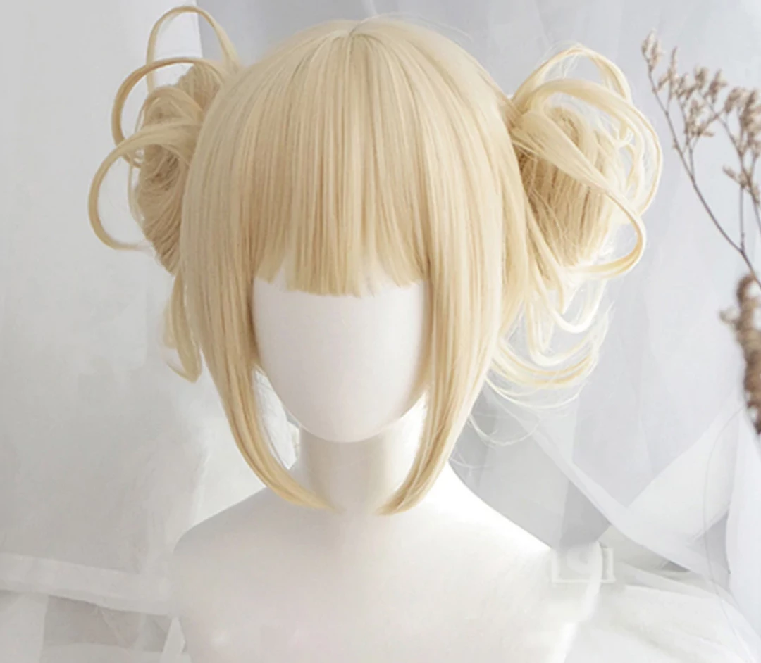 Everyone’s favorite yandere Himiko Toga from Boku no Hero Academia! Complete your Himiko Toga Cosplay with this wig. Blonde Anime Wig w Short Bangs and Two Buns with Curly details. One size fits most.