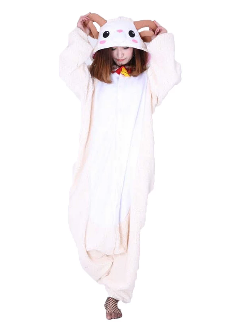 This awesome onesie is so different from any other onesie that we’ve seen! Featuring an all over fluffy ‘wool fur’ material to really give a good effect, detailed face hood with 3D horns and button closure.