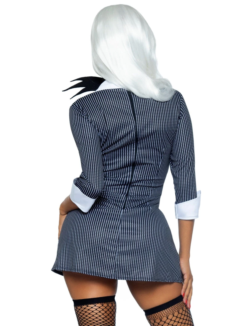 Take your place as the pumpkin queen in the iconic Leg Avenue 2-Piece Bone Babe Costume Set. The bold Burton-inspired babe costume features a suit dress with bone pinstripe and oversized bow tie.