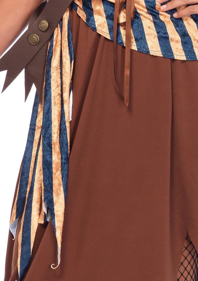 Long dress with jaggered edges, missmatched sleeves, waist sash, body strap and head sash.