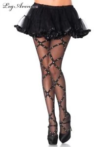Leg Avenue Sheer Black Pantyhose With Cross And Dot Detail