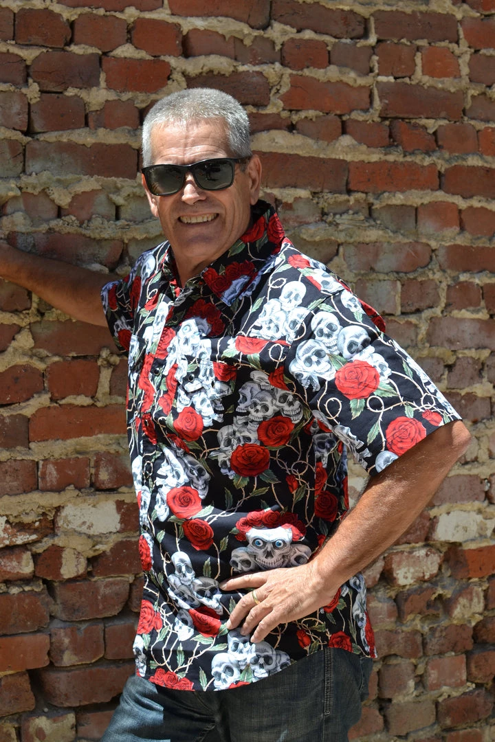 Short sleeved men’s button down with press stud button closure and chest pocket.