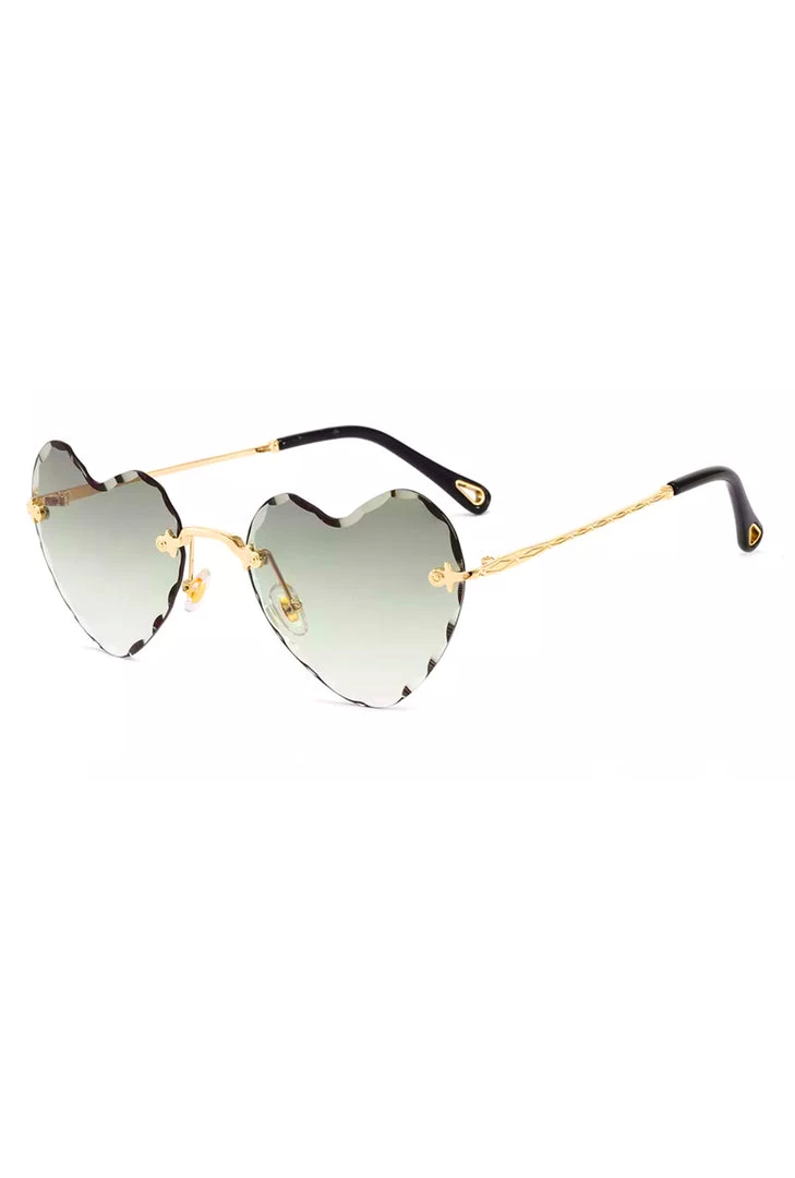 These super adorable gradient ash green to clear heart glasses have a kaleidoscope jewelled edge. Perfect for fashion and festivals!
