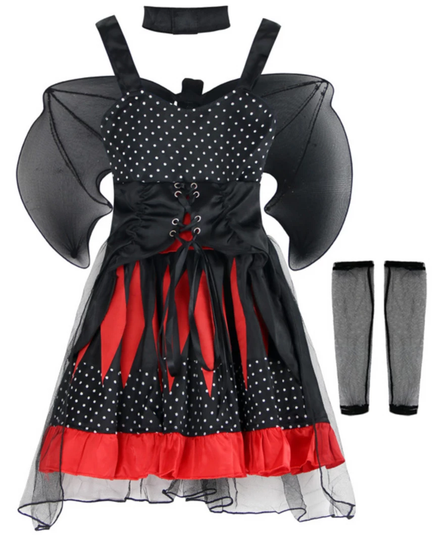 Look like a Real Bat Princess! Comes with Bat Wings, Little Choker and Fishnet Gauntlet. Perfect for Dress Up Parties, Book week or Halloween