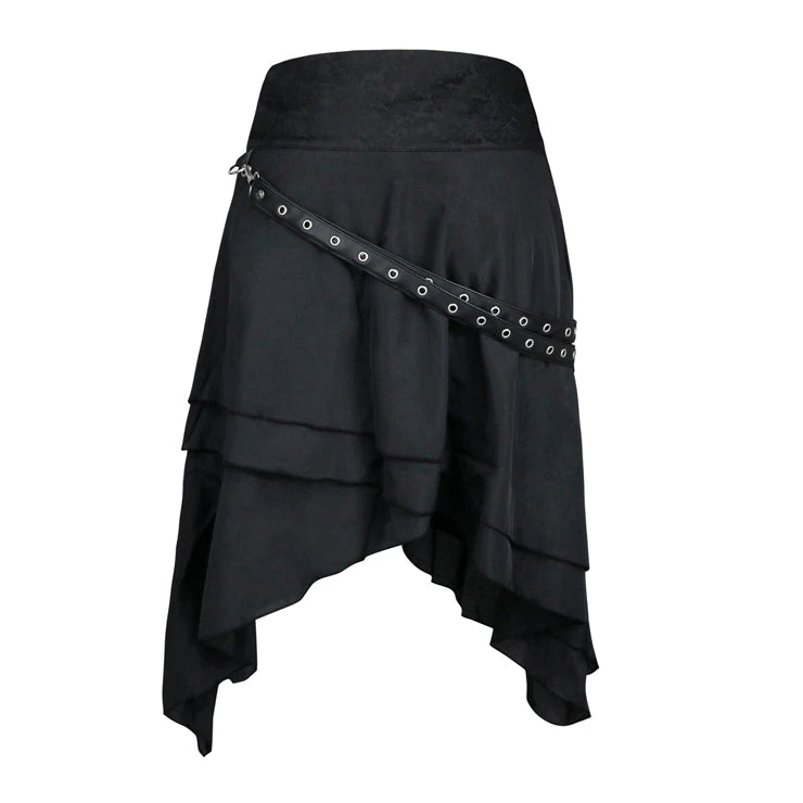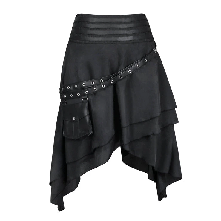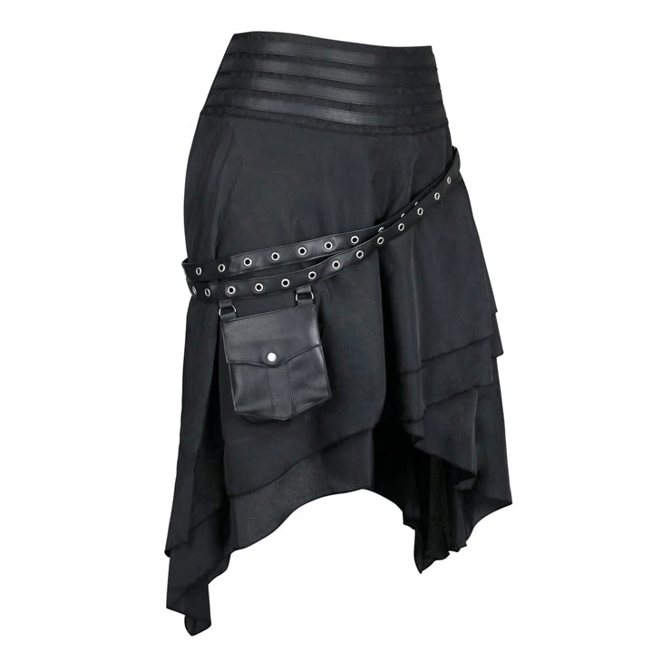 This Victorian Gothic Skirt is made out of high quality soft fabric with a black layered and asymmetrical hemline design. It is a High-Waisted fit with PU Leather straps and pocket on the front of the skirt. S – XL. View Size Chart in Image Gallery.