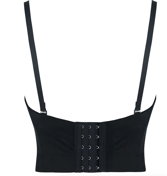 Cropped bralette top with removable straps and hook and eye back closure. Fits up to a C-cup