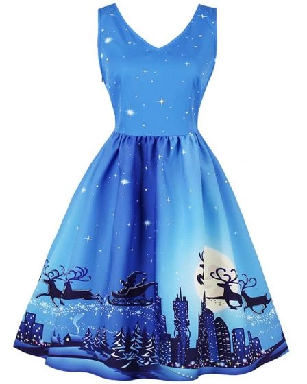 Be the first to review “Malltop Blue Snow Scene Christmas Print Dress” Cancel reply