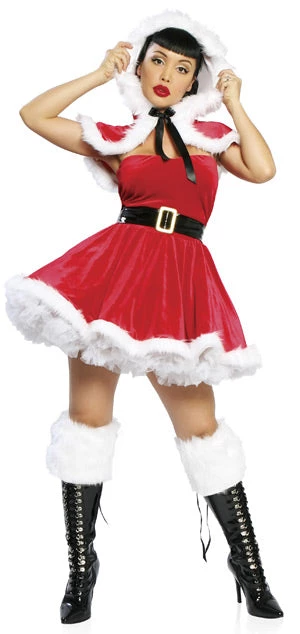 Perfect for a Christmas Party! Includes Red Santa Dress, Black Belt and Capelet. Boots Not Included. One-size. Bust: 88cm , Waist: 74cm.