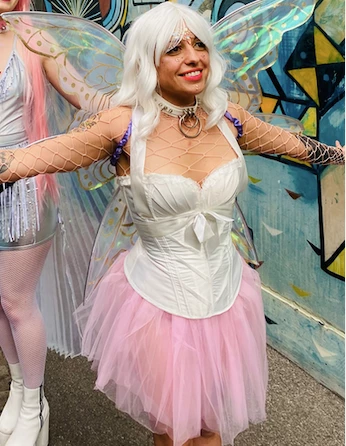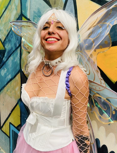 This beautiful overbust corset has a front band and bow with satin line detailing on the front, a classic tie-up halter-neck, a lace-up back closure and a side-zip.