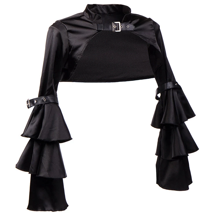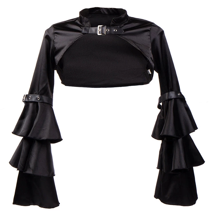 Malltop Cropped Black Satin Steampunk Shrug