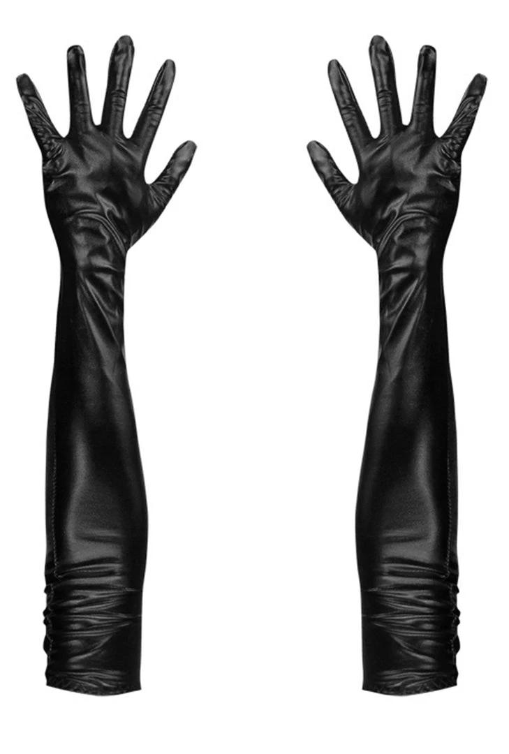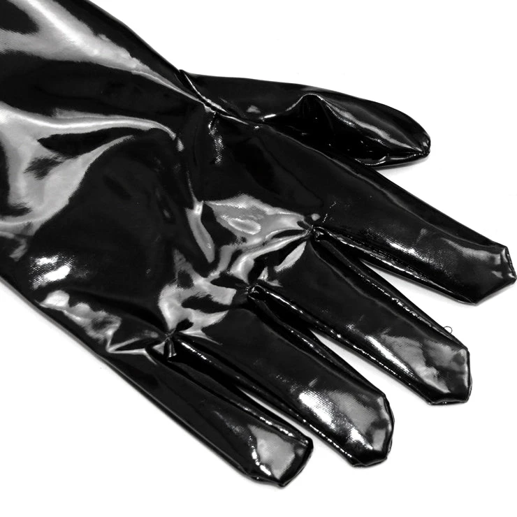 Malltop Extra Long Black Wet Look Gloves