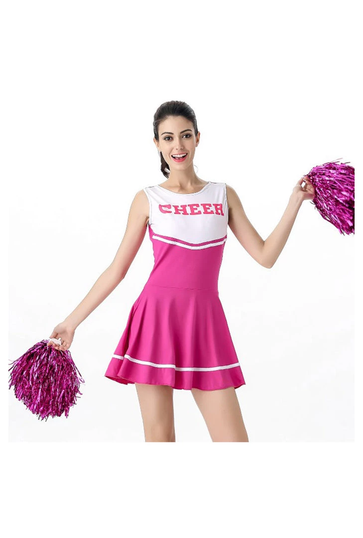 Bright Pink dress featuring cheer across the chest with an a-line skirt.