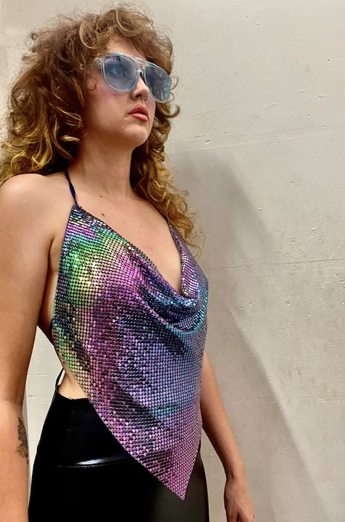 Be the first to review “Moo Moo Festival Wear Rainbow Metal Mesh Triangle Top” Cancel reply