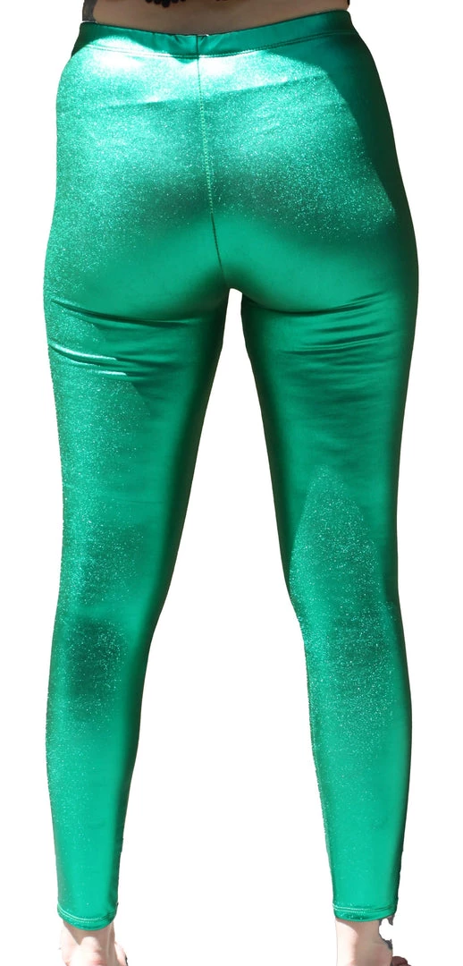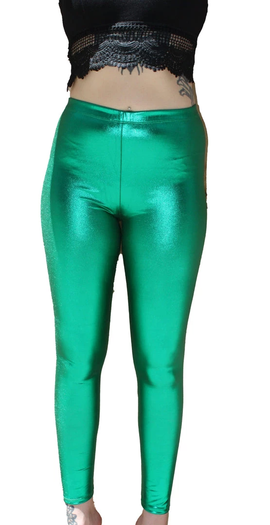 Shiny metallic leggings with stretchy elastic waist!
