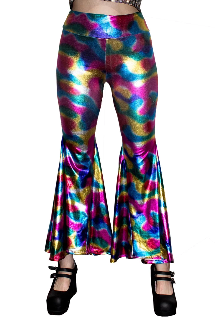 These high waisted metallic pants are sure to attract some attention. Pair with one of our metallic crop tops for the ultimate 70’s Disco look.
