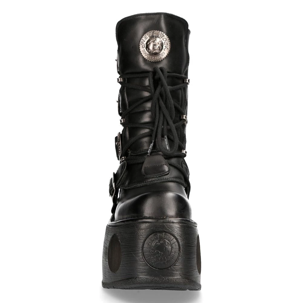 These stand out white platform leather shoes from New Rock feature: