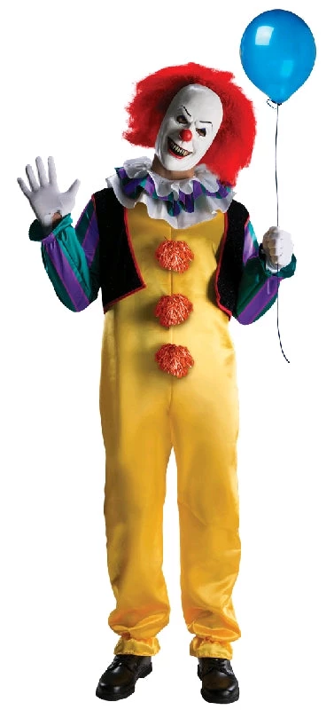 Step in Pennywise the Dancing Clown’s shoes and relive the horror of Stephen King’s IT. For Pennywise is IT, not just a wisecracking clown, but a strange sadistic life from another dimension, out to exploit the phobias of his victims. Includes:Clown Jumpsuit, Gloves & Mask with wig