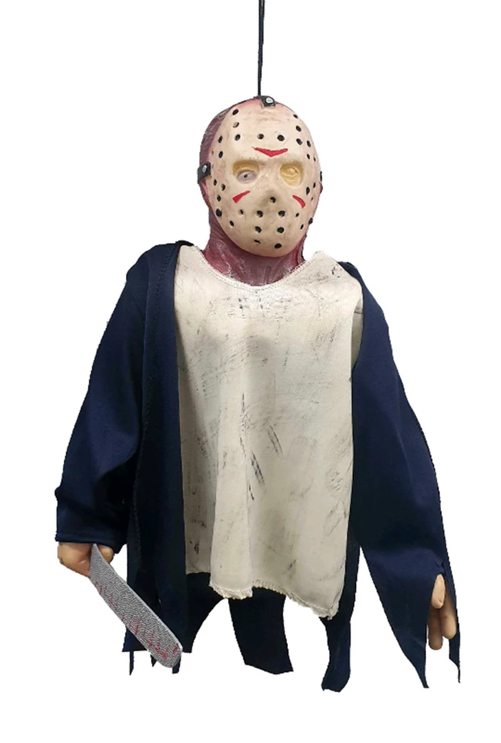 This Hanging Halloween Decor is a Puppet model of Friday the 13th – Jason Vorhees’ torso and head with his trademark hockey mask and machete. it is 57cm tall.