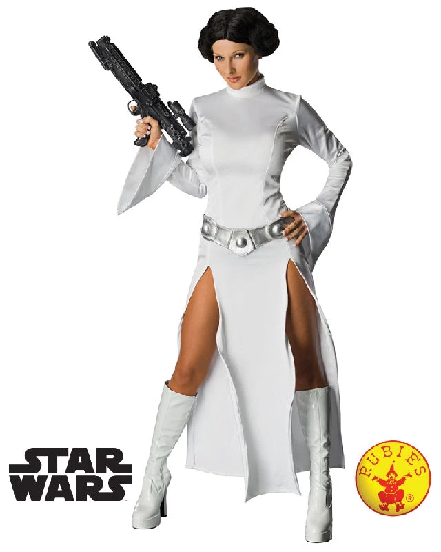 Become the Rebel Alliance’s Greatest Leader. Fearless and strong, she, along with friends like Han Solo and brother Luke Skywalker bring down the Death Star in the famous Lucas Film and Disney Star Wars series. Played by the iconic Carrie Fisher, Princess Leia Organa appears in Star Wars: A New Hope (1977), The Empire Strikes Back (1980), Return of the Jedi (1983), Revenge of the Sith (2005), The Clone Wars (2008), Star Wars: Rebels (2014), The Force Awakens (2015), Rogue One (2016) and The last Jedi (2017). She is known for her trademark long white dress and immaculate plaited hair buns. This woman is a heroine of all the Galaxies as she fights like a Jedi with her lightsaber. Dressed as Princess Leia, you know the force will always be with you.