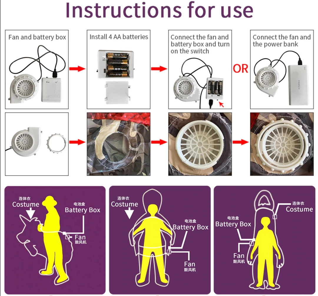 - FAN POWERED INFLATABLE COSTUME (FAN UNIT INCLUDED).