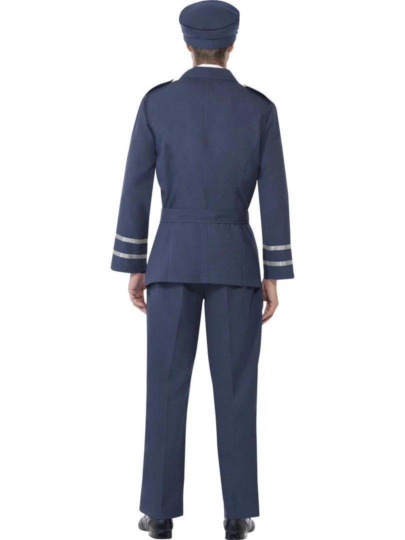 Smiffy’s WW2 RAF Uniform comes in the traditional Blue colour and includes Jacket, Trousers, Hat and Tie. The Jacket is decorated with silver stripes around the cuffs, military stripes on the arm and an air force badge printed on the chest. The navy blue trousers come with creases down the front of the legs matching the uniform of the period. Also included is an attached blue belt with a metallic buckle, a blue Tie and a blue peaked Hat with a badge on the front. Excludes White Shirt pictured in the image.