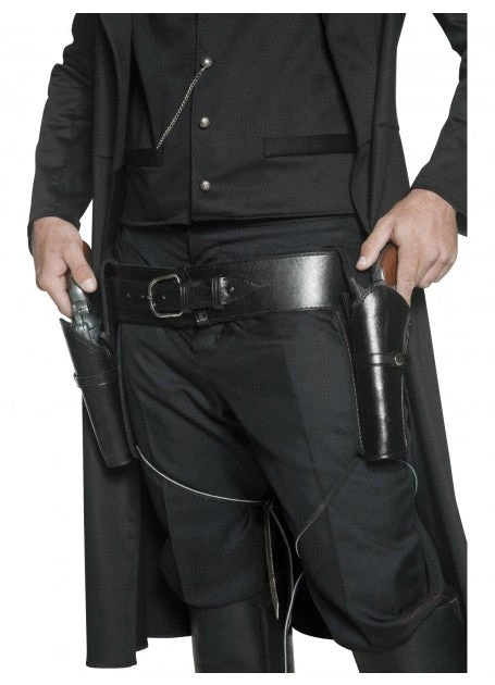 Perfect for your next wanderer costume, this black double gun holster belt is sure to finish off your costume.