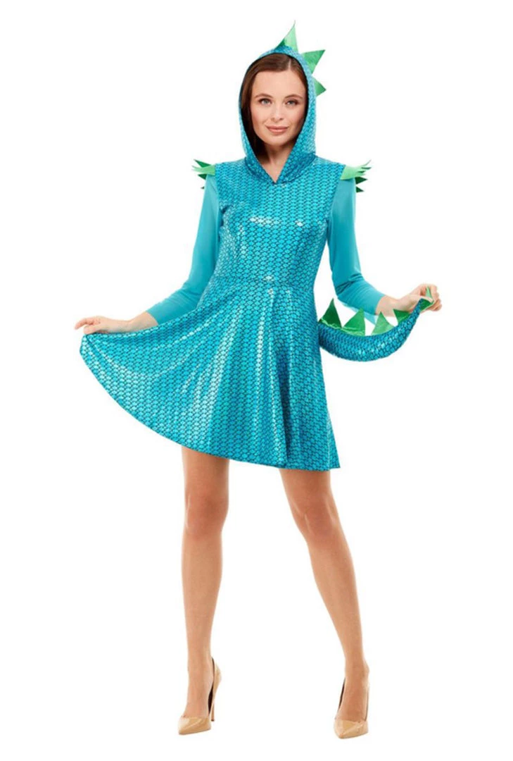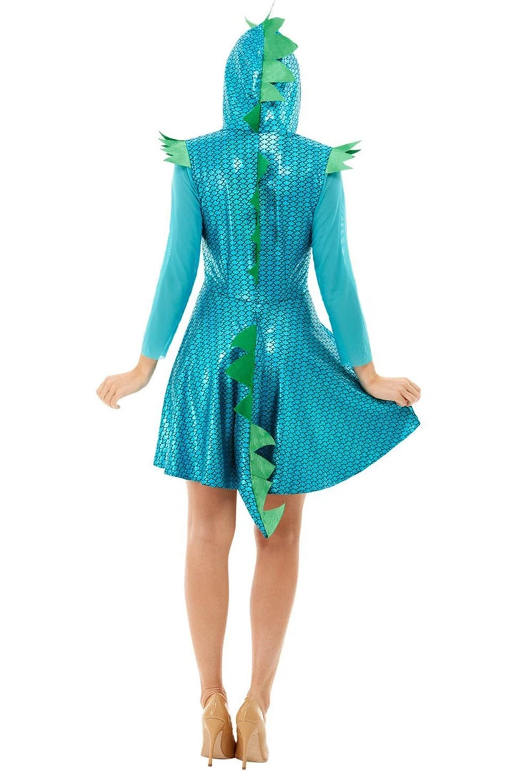 Travel back to the Middle Ages where fire Breathing Dragons were feared in our Dragon Costume. This cute costume comes with a Blue Hooded Dress which has Dragon scale pattern on the dress along with a tail and fake spike detailing.